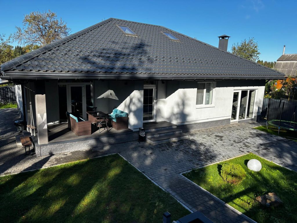 Здесь вы найдёте всё необходимое для комфортного отдыха: четыре спальни, подогреваемый бассейн, сауну на дровах, оборудованную кухню-столовую, веранда и зону барбекю.